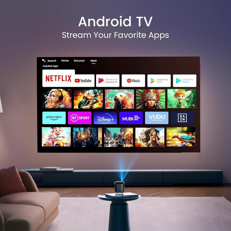 با سیستم عامل اندروید تعبیه شده در این پروژکتور، شما به یک دنیای وسیع از برنامهها و بازیها دسترسی خواهید داشت. میتوانید به راحتی برنامههای مورد علاقه خود مانند نتفلیکس، یوتیوب و دیزنی پلاس را دانلود کرده و از تماشای محتواهای مورد علاقه خود لذت ببرید.